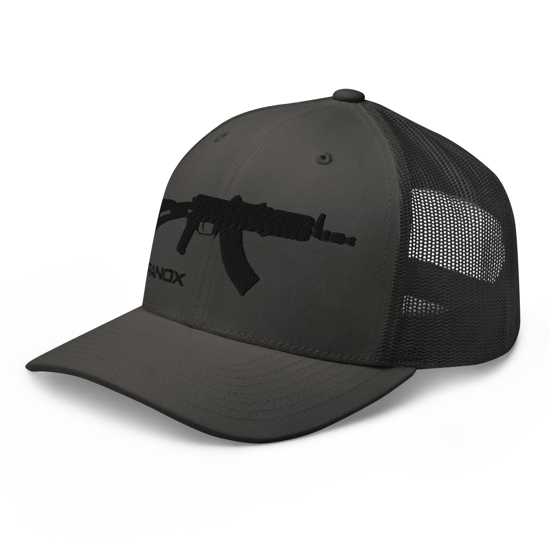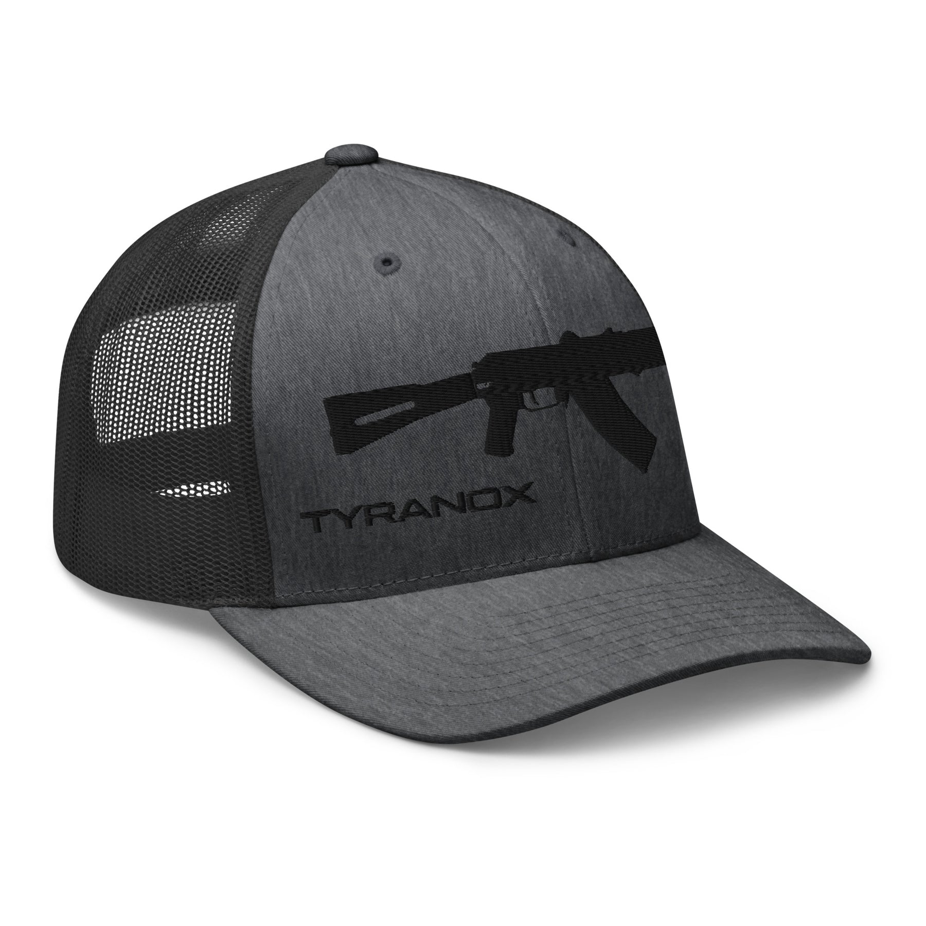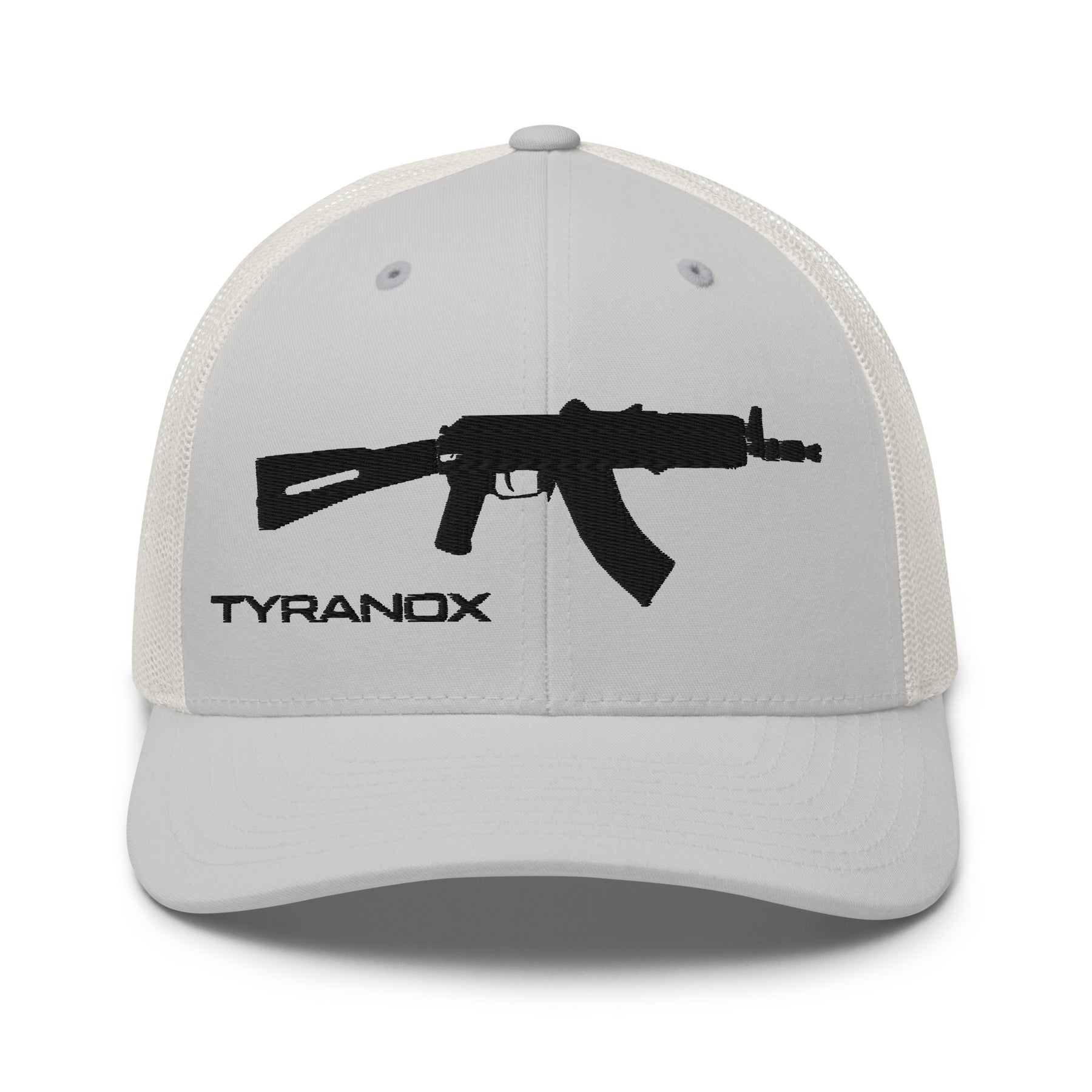 The AK#1 Trucker Hat is the first in our AK designs collection, featuring the bold silhouette of an SBR AK-47 front and center. Rugged, clean, and unmistakably Tyranox, this hat brings iconic style to a classic trucker build.