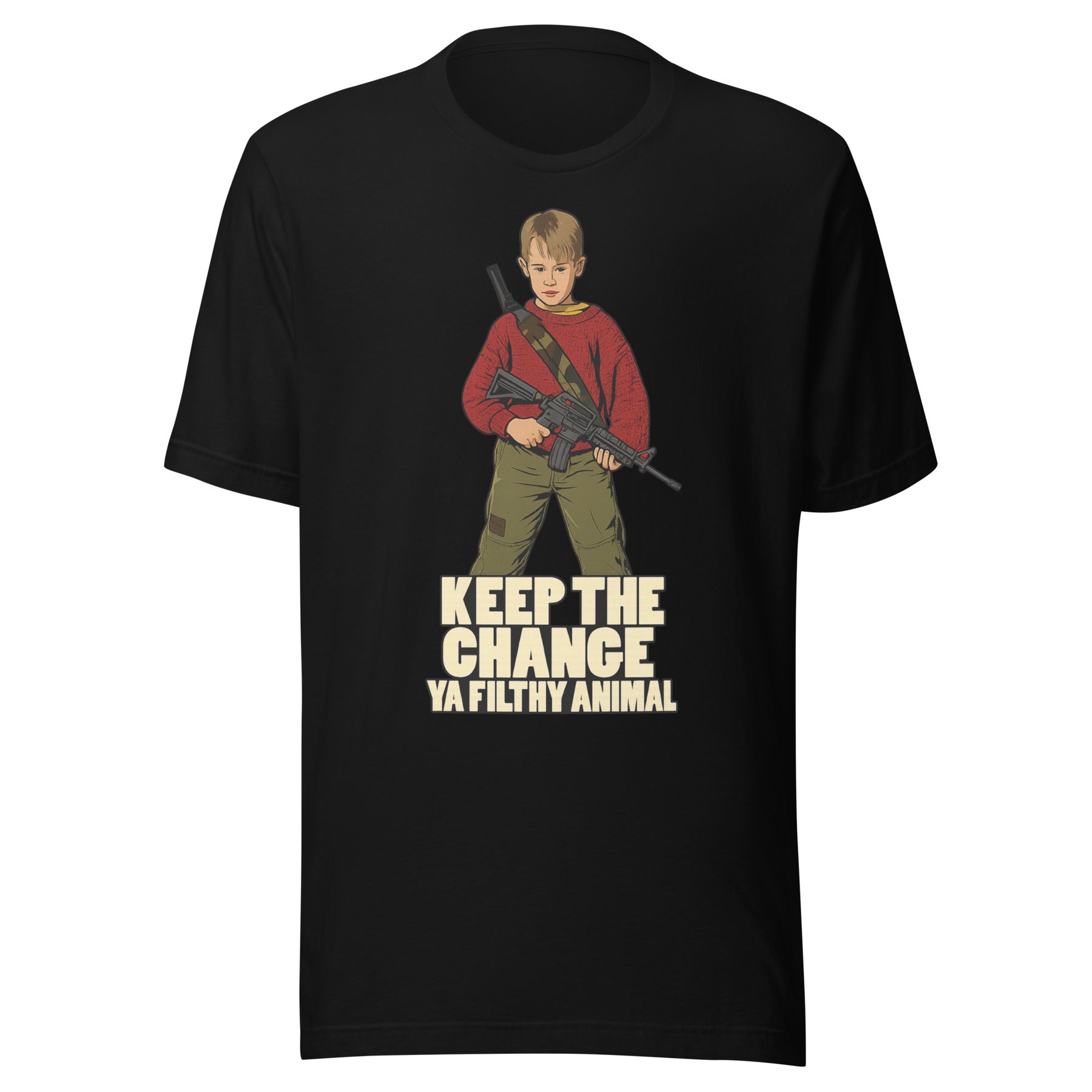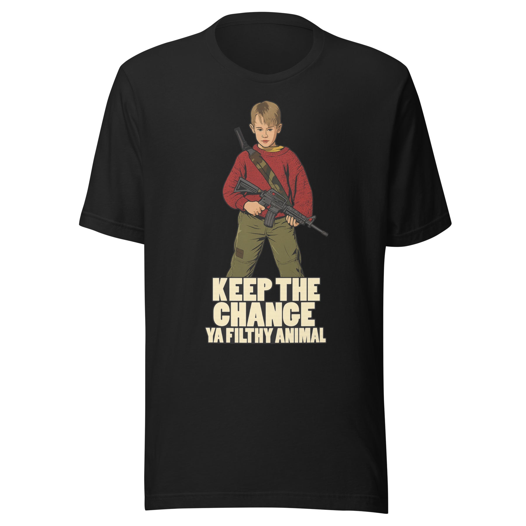 The Filthy Animal Tee delivers a savage twist on a legendary Christmas movie moment. Featuring a cold-stared kid holding his rifle and the iconic line “Keep the change, ya filthy animal,” this design brings nostalgia, attitude, and pure holiday rebellion together in one bold hit.